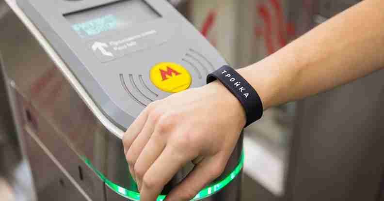 Московский метрополитен провёл рекламную кампанию нового способа оплаты проезда - браслета «Тройка».