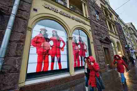 Большая часть видеовитрин предназначены для рекламирования собственного бренда компаний, а вот Benetton выполнил размещение некоммерческого интерактивного контента. Основная идея состояла в том, чтобы предоставить студентам площадку, на которой они смогут продемонстрировать свои собственные работы.