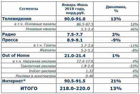 Сегменты "наружная реклама" и "прочее", включающий расходы на indoor-рекламу и рекламу в кинотеатрах, были объединены в один сегмент под названием Out Of Home (OOH) при подведении итогов за прошлый год. Все эти изменения отражены в скорректированной версии объемов рекламного рынка.