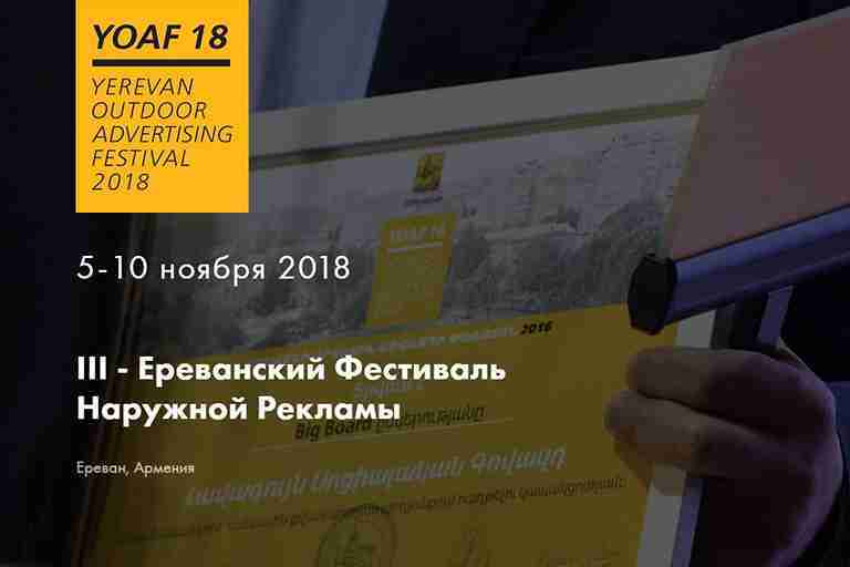 Открытый фестиваль наружной рекламы YOAF - это международное мероприятие, которое проводится в Ереване и способствует развитию рекламной индустрии в регионе, а также внедрению передовых международных практик на армянском рынке.